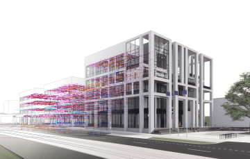 Budova byla kompletně vyprojektovaná metodou BIM, a to jak při přípravě, tak i při realizaci. Během celého procesu stavby byla nalezena jen jedna kolize, což je neuvěřitelné. Z pohledu 4.0 jde tedy především o digitalizaci, vše jsme dělali ve 3D a na jednom místě, v reálném čase. Nebylo to tak, že bychom si jednou za týden předávali model, pracovali jsme na něm všichni ve stejný čas a ihned viděli změny. Od začátku do konce to bylo dělané ve 3D, což je přidaná hodnota celého procesu.