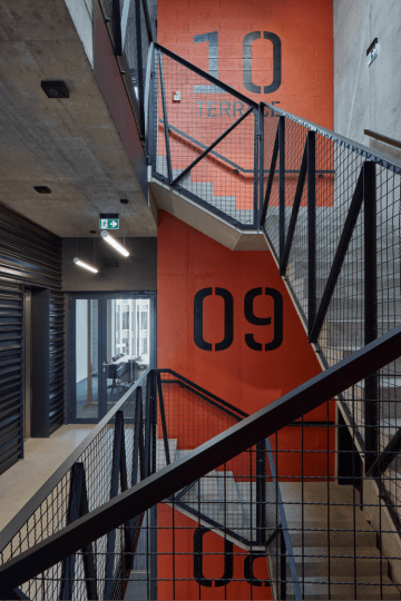 Projekt nejen zachovává průmyslové dědictví místa, ale zároveň přináší inovativní designové prvky, jako jsou fasády připomínající vlnité plechy a speciální grafické designy v infosystému.