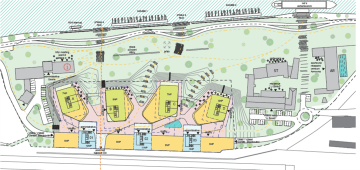 Ke snížení přehřívání pomáhají např. zelené střechy v kombinaci extenzivní a intenzivní zeleně, dále také návrhy pěších cest formou mlatových pěšin na místo tvrdých zpevněných povrchů, a v neposlední řadě i nová výsadba vzrostlé zeleně a trávníků, které v původním brownfieldu zcela chyběly.